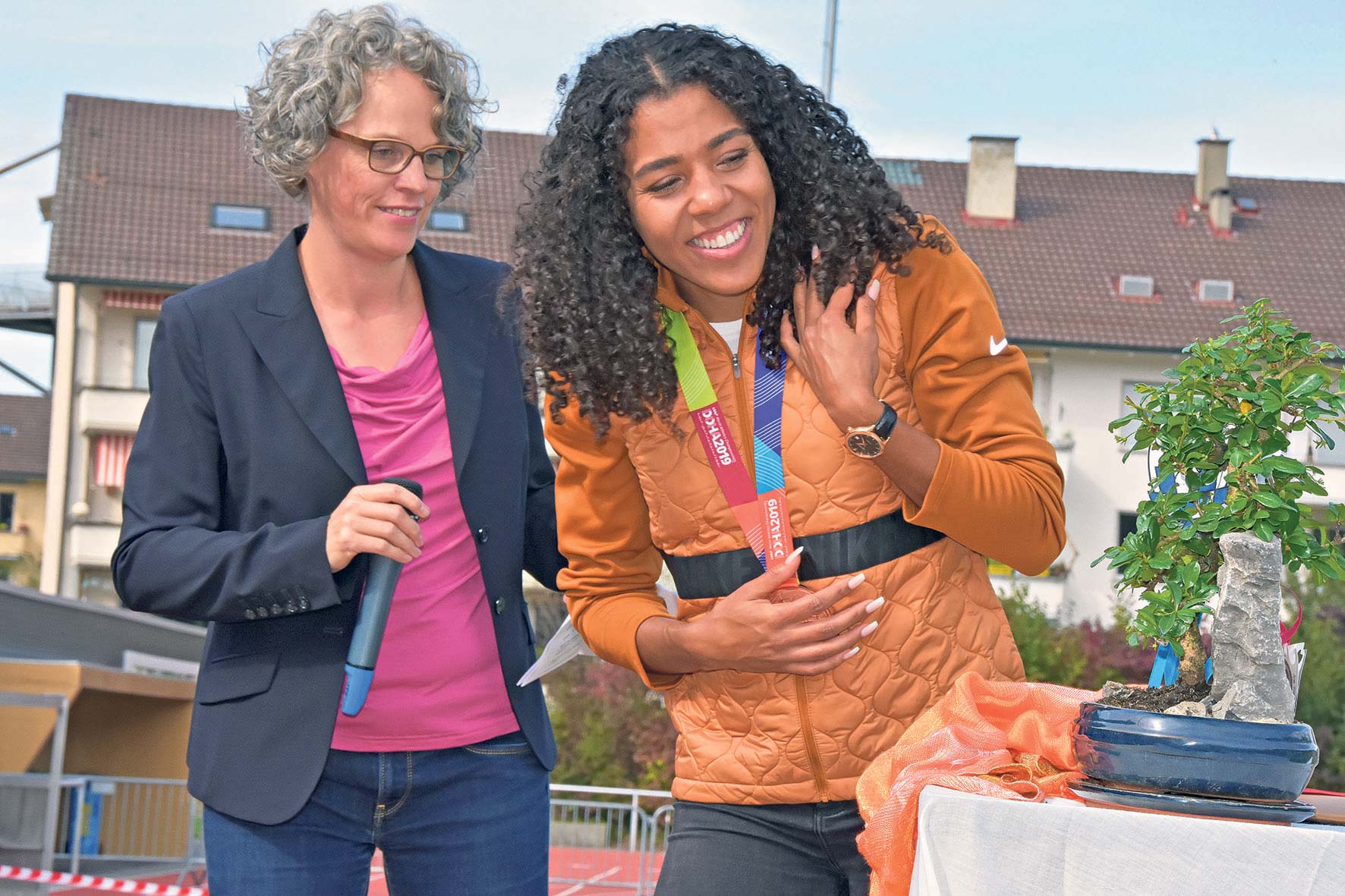 Die in Köniz aufgewachsene Leichtathletin Mujinga Kambundji wurde Mitte Oktober von der Bevölkerung und von der Gemeinde im Sportstadion Liebefeld gefeiert.